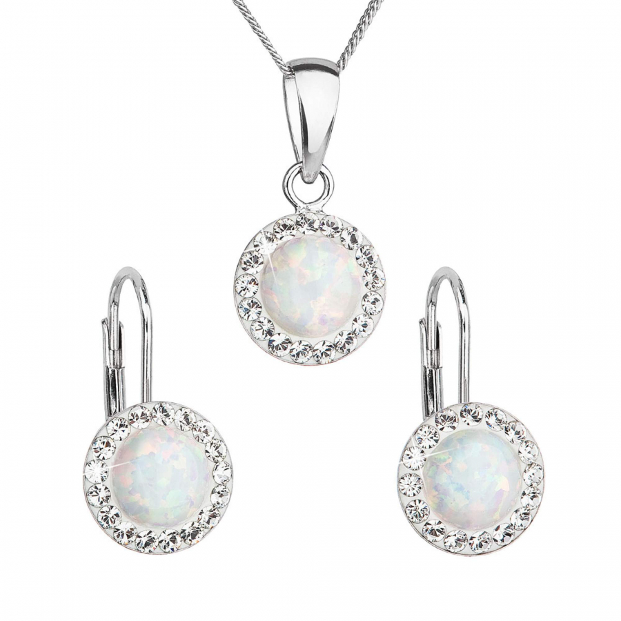 Súprava šperkov so syntetickým opálom a kryštálmi Preciosa náušnice a prívesok biele okrúhle 39160.1