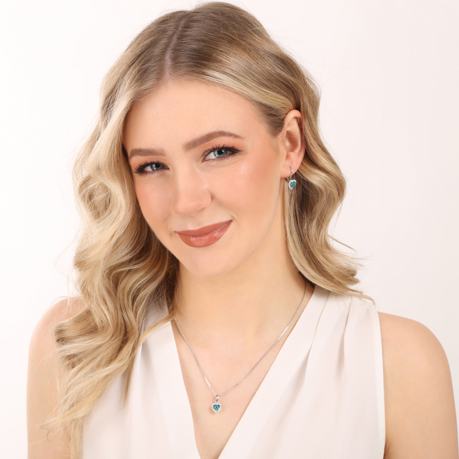 Sada 39161.1 obsahuje visiace náušnice a retiazku s príveskom v tvare srdiečka. Šperky sú vyrobené zo striebra rýdzosti 925/1000, ktoré prešlo povrchovou úpravou ródiom. Ródium chráni šperk proti sčerneniu, zožltnutiu i poškriabaniu. Prívesok aj náušnice sú zdobené zeleným syntetickým opálom, ktorý je navyše olemovaný ešte malými trblietavými Preciosa kryštáliky v bielej farbe. Náušnice majú zapínanie na klapku. Keďže šperky neobsahujú žiadny prídavok niklu , môžu ich bez obáv nosiť aj alergici.