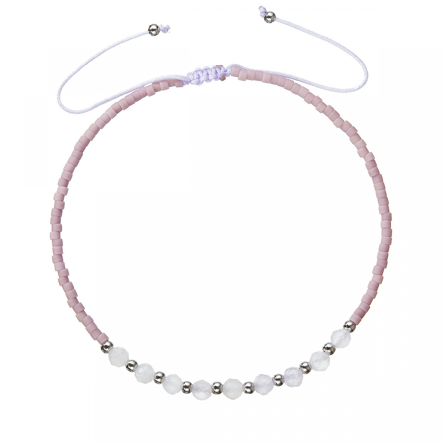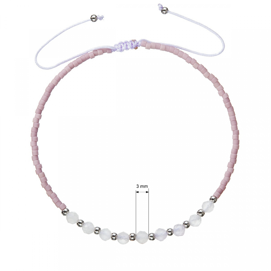 Jeho fialové odtiene evokujú mystérium a hĺbku, zatiaľ čo jemné ametysty dodávajú náramku noblesný lesk. Ručne vyrobený so starostlivosťou a precíznosťou, tento náramok je nielen štýlovým doplnkom, ale aj výrazom vašej individuality a vkusu. Náramok Miyuki 13037.3 sa skladá z jemne fialových a bielych korálok. Je dozdobený komponentom guličiek zo striebra 925/1000.