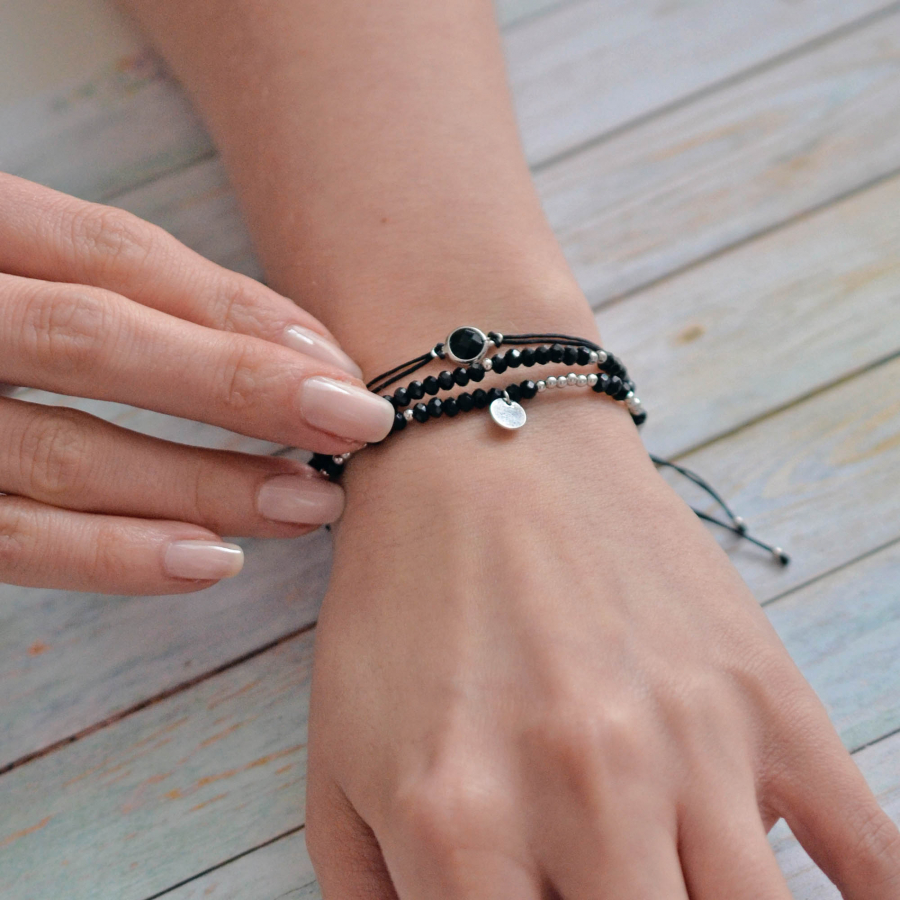 Textilný náramok čierne korálky 13038.3 black