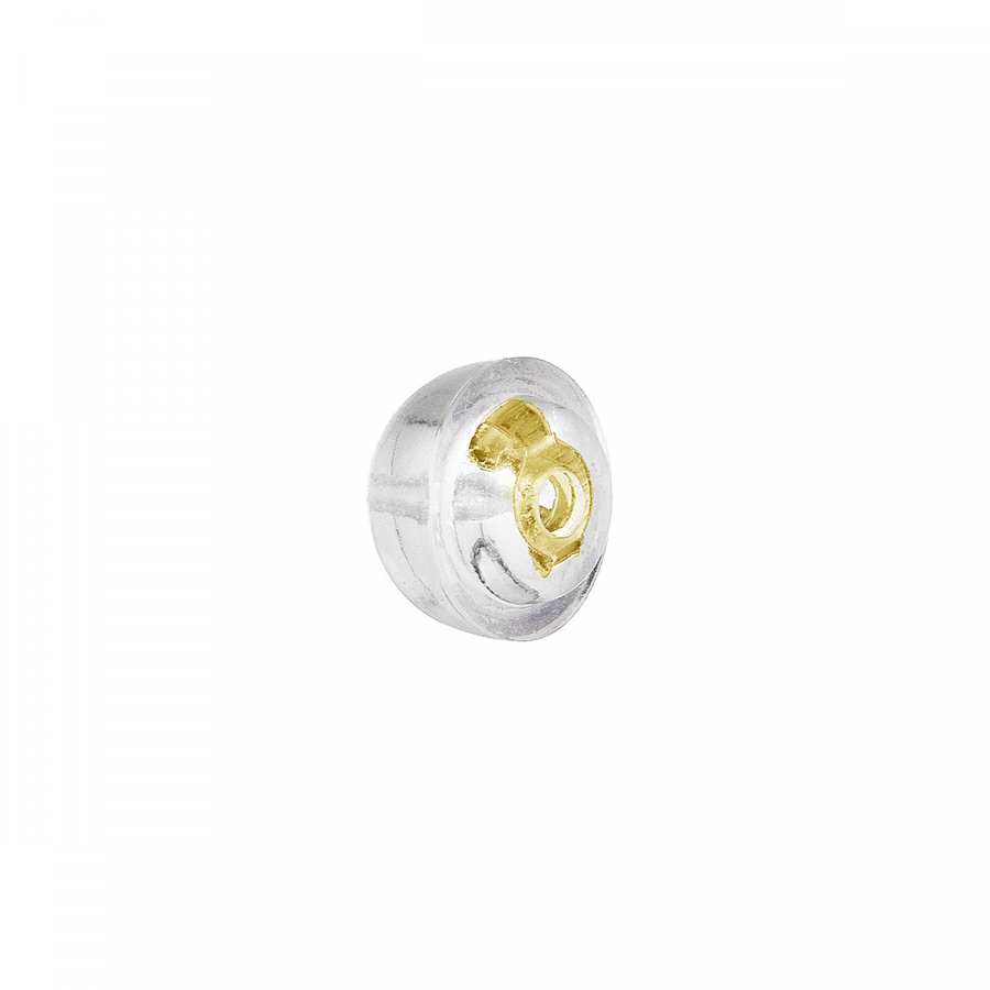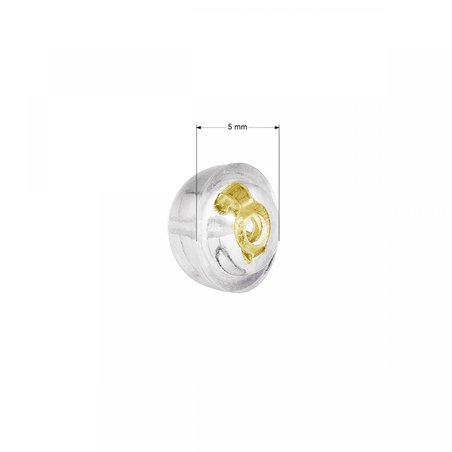 Silikónová zarážka alebo tiež puzeta na náušnice s pozláteným strieborným detailom vo vnútri dierky.