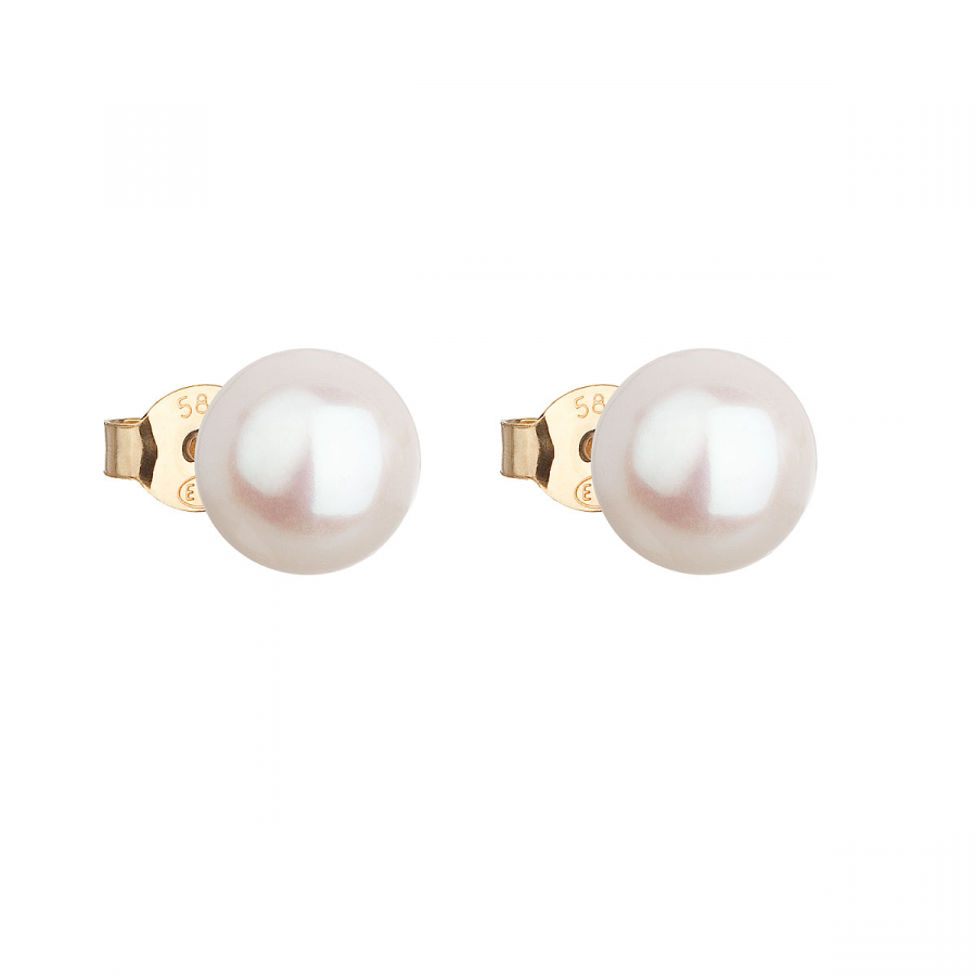 Zlaté 14 karátové náušnice kôstky s bielou riečnou perlou 921042.1