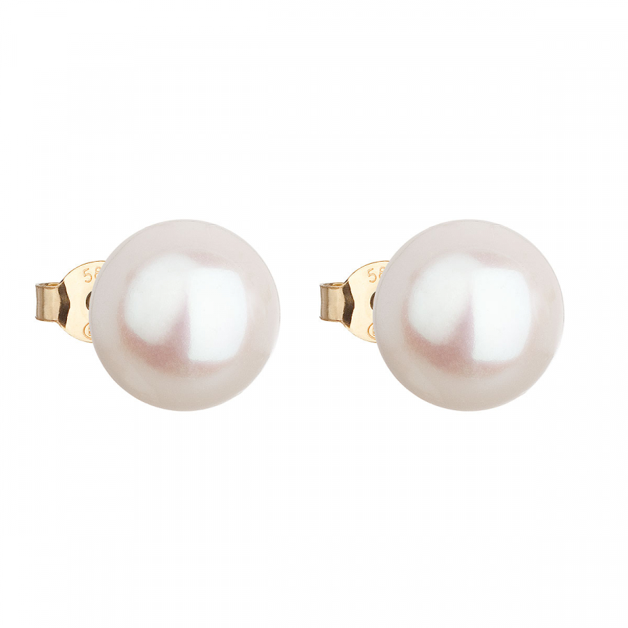 Zlaté 14 karátové náušnice kôstky s bielou riečnou perlou 921043.1