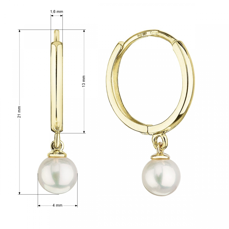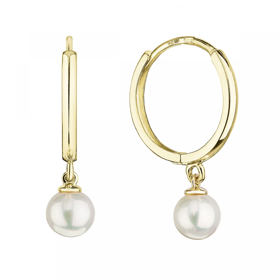 Zlaté 14 karátové náušnice kruhy žlté zlato s bielou riečnou perlou 91P00030