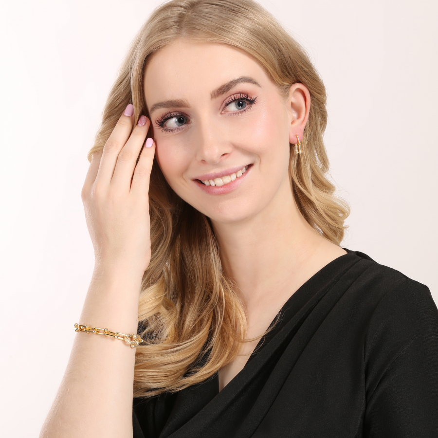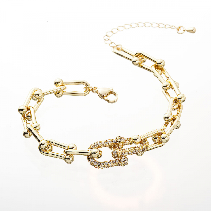 Očarujúce zlatý bižutérny náramok s originálnym dizajnom, ktorý rozžiari každý váš outfit. Trblietavé zirkóny dodávajú šperku iskrivý nádych luxusu, zatiaľ čo nastaviteľná dĺžka 18-22 cm zaistí pohodlné nosenie. Tento nadčasový kúsok sa stane vašim verným spoločníkom pri každej príležitosti.